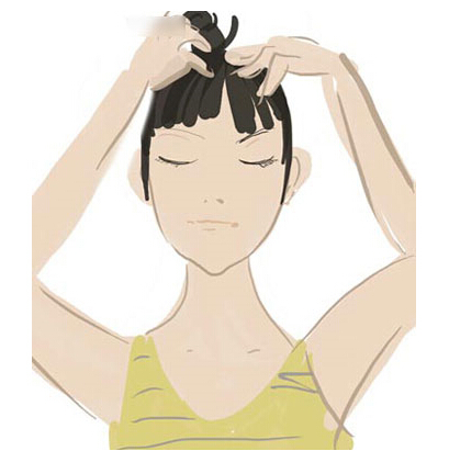 7、梳顶 可以使百脉调和,改善头部末梢血液循环和大脑供血,活跃大脑生理功能。方法:十指如耙,如梳头状从前发际梳到后发根,从前额的“上星穴”到头顶的“百会穴”,从后脑“风府穴”到“大椎穴”。然后左右梳顶,前后左右各9次。